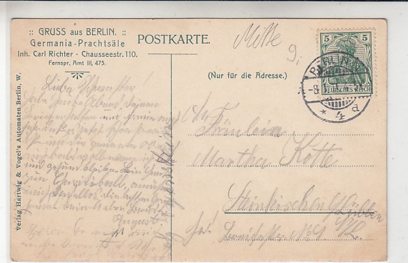 Berlin Mitte Koppenstraße Paul Obigol Konzertsäle 1914