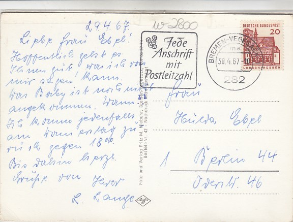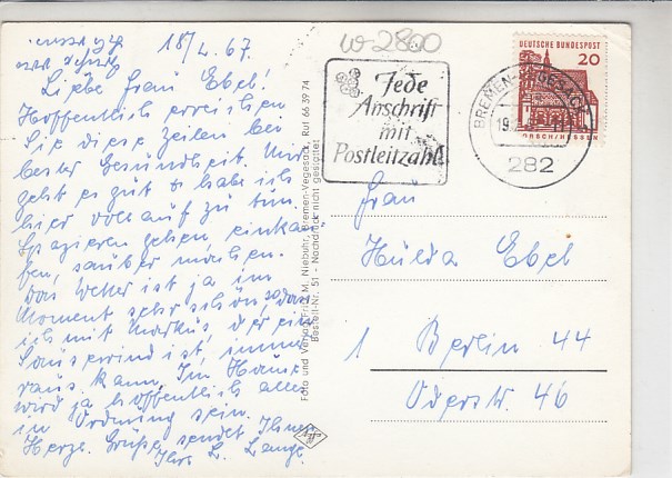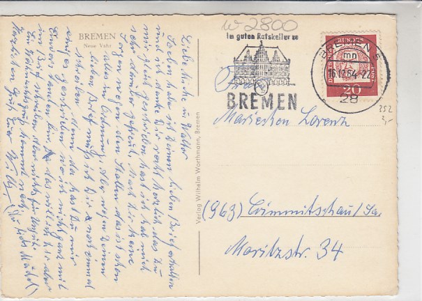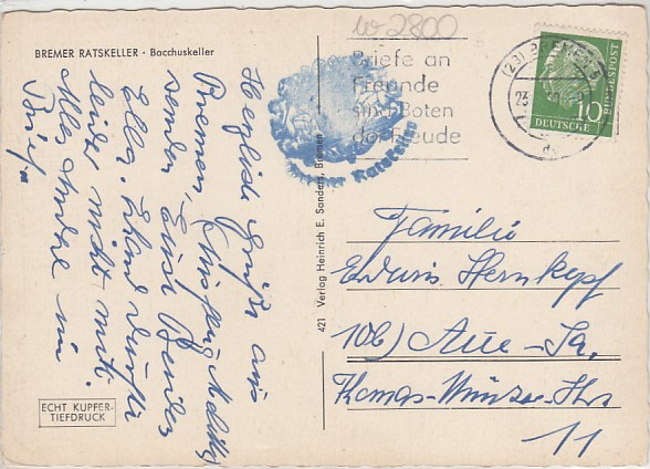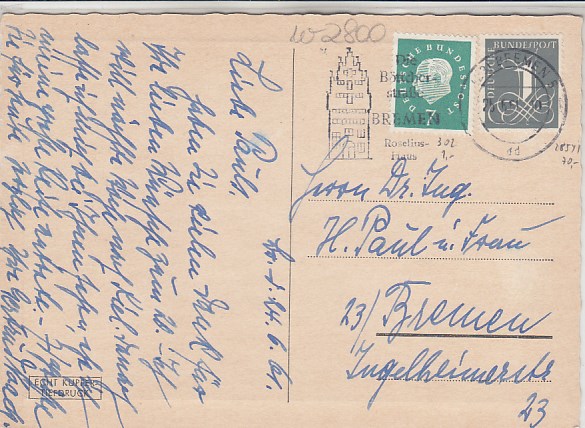 Bremen Künstlerkarte Kaffeee Werbung 1960