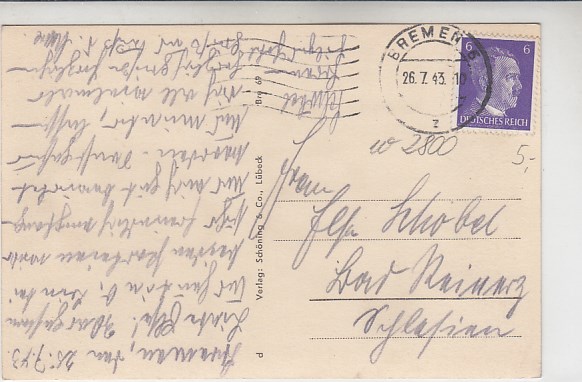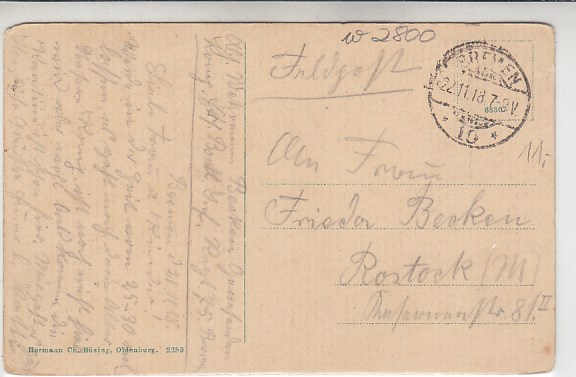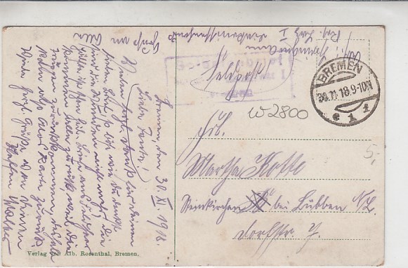 Bremen Bahnhof Feldpost Lager-Abteilung 1.WK