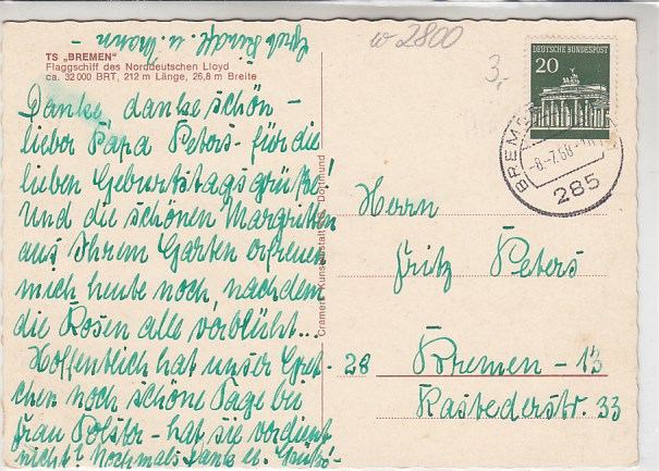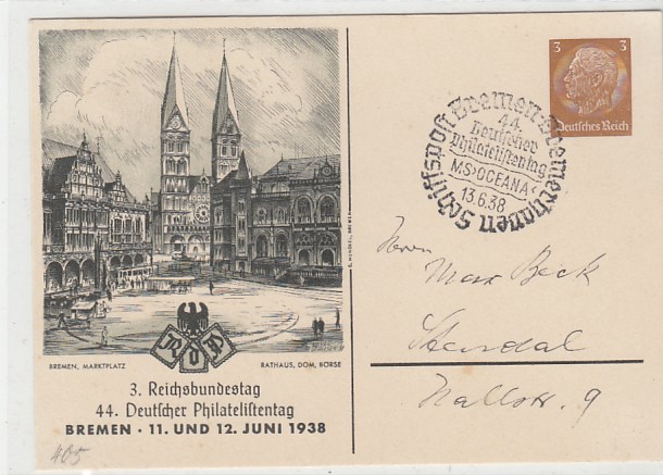 Privatganzsache Bremen Reichsbundestag Sonderstempel 1938