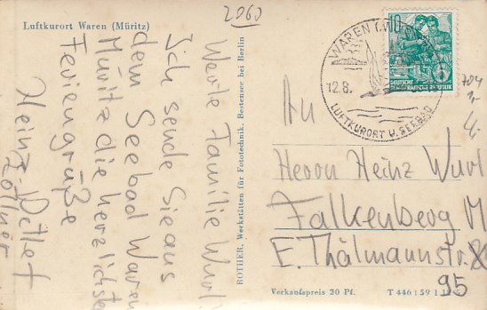 Waren an der Müritz in Mecklenburg Seebadrestaurant 1954