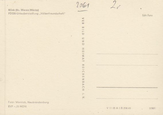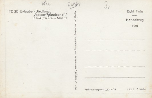 Klink an der Müritz in Mecklenburg FDGB-Urlaubersiedlung 1965