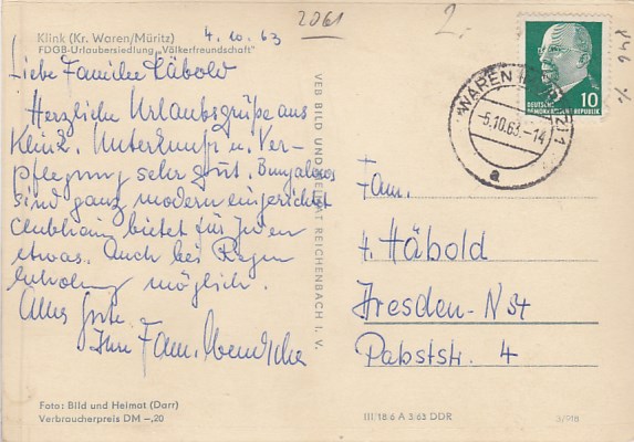 Klink an der Müritz in Mecklenburg FDGB-Urlaubersiedlung 1963