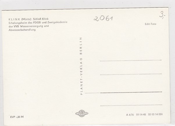 Klink an der Müritz in Mecklenburg Schloß 1976