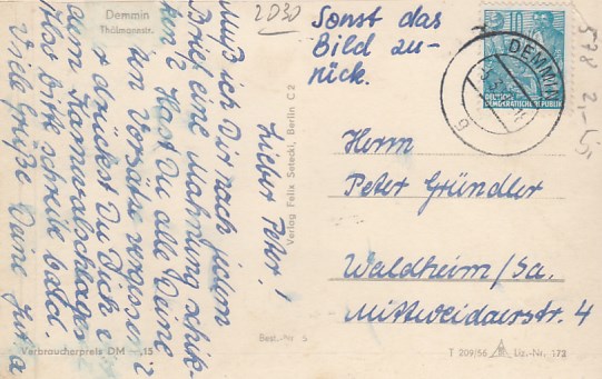 Demmin Mecklenburg-Vorpommern Thälmannstraße 1956