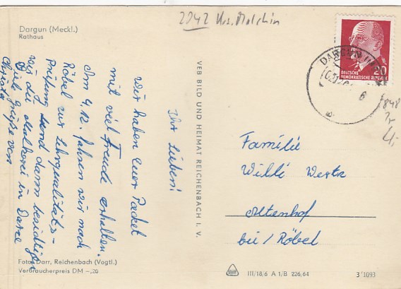 Dargun Mecklenburg Hotel Zum Deutschen Haus 1974