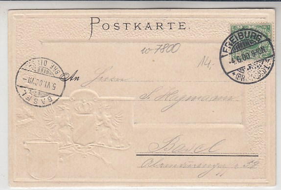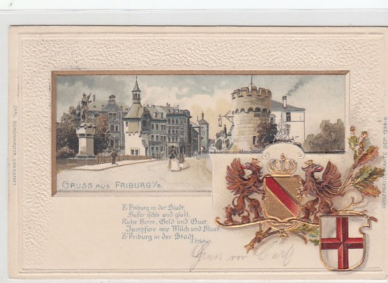 Freiburg im Breisgau Passepartoutkarte Prägekarte mit Wappen 1900