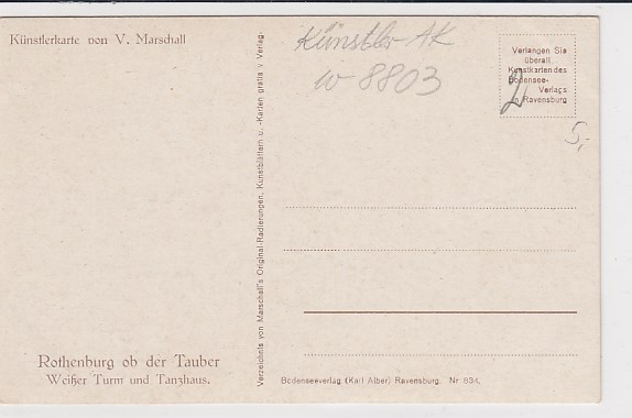 Rothenburg ob der Tauber Künstlerkarte vor 1945