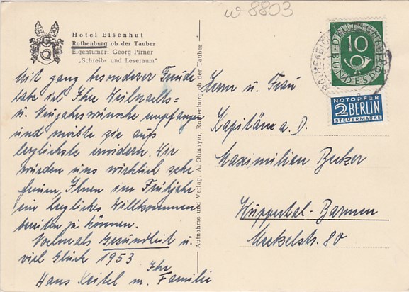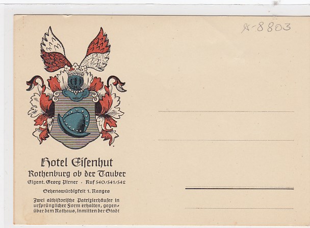 Rothenburg ob der Tauber Hotel Eisenhut 1953