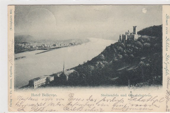 Burg Stolzenfels und Hotel Bellevue bei Koblenz am Rhein 1898