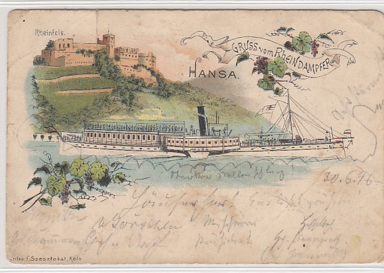 Koblenz am Rhein Raddampfer Hansa und Burg Rheinfels 1896