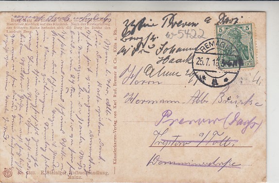 St.Goarshausen Burg Katz 1914