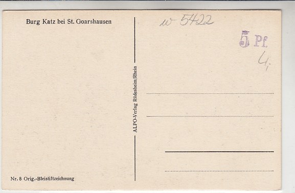St.Goarshausen Burg Katz Künstlerkarte Albert vor 1945