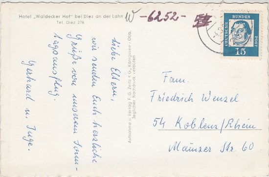 Moselburgen Geschichten und Sagen Kloster Stubben Ritter Künstlerkarte Wewer Stempel Niederlahns