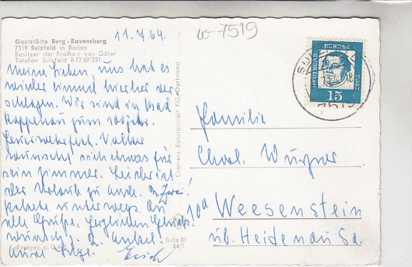 Sulzfeld Gaststätte Burg Ravensburg 1964