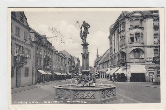 Offenburg Hauptstraße Neptunbrunnen 1954