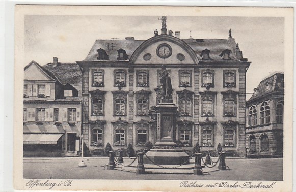 Offenburg Rathaus Drake-Denkmal 1934