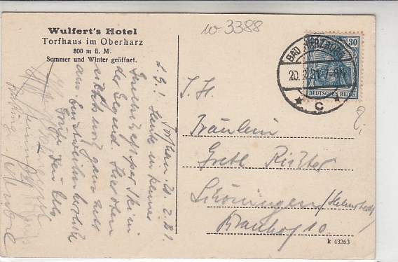 Torfhaus Bad Harzburg Wulferts Hotel 1921