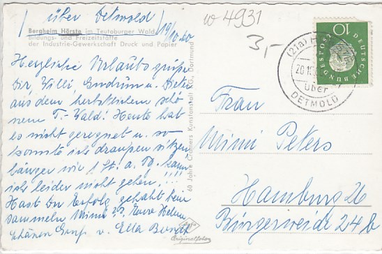 Bergheim Hörste im Teutoburger Wald bei Detmold 1960
