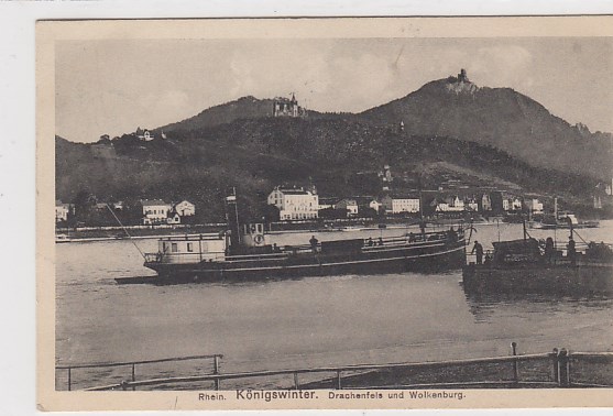 Königswinter am Rhein Dampfer und Wolkenburg ca 1925