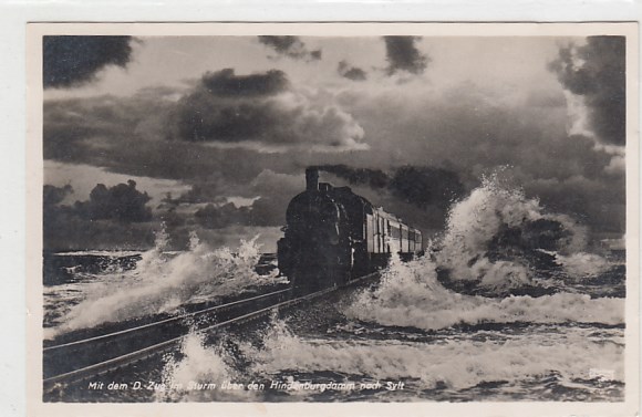 Nordseebad Westerland auf Sylt Hindenburgdamm Eisenbahn 1937