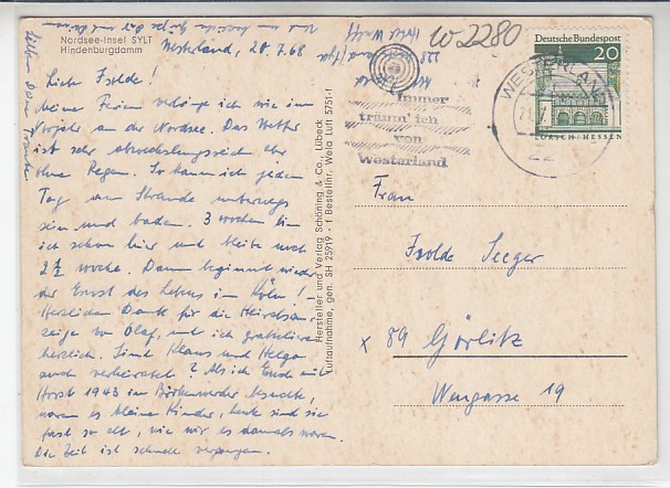 Nordseebad Westerland auf Sylt Hindenburgdamm Eisenbahn 1968