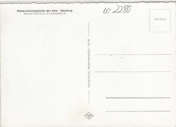Nordseebad Westerland auf Sylt Müttererholungsheim der Awo-Hamburg ca 1965