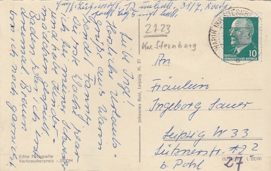 Zwenzow bei Neustrelitz in Mecklenburg Landpoststempel 1961