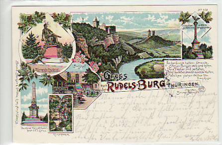 Rudelsburg und Saaleck bei Bad Kösen Litho von 1898
