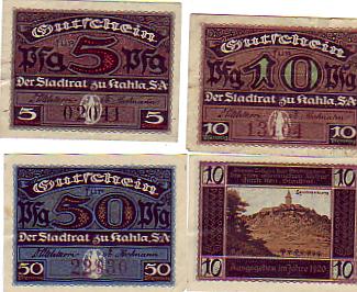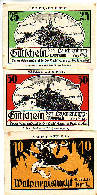 21377 [6906ono2] |  | Kahla Thüringen 4 Scheine Notgeld , Leuchtenburg | 6.00EUR | In den Warenkorb |