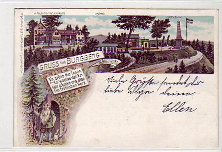 Burgberg und Brocken bei Bad Harzburg Litho von 1898