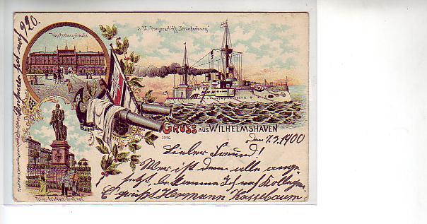 22012 [2940w90] |  | Wilhelmshaven Marine Kriegsschiff S.M.Pamzerschiff Brandenburg | 15.00EUR | In den Warenkorb |