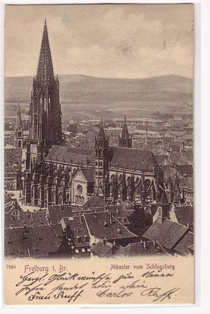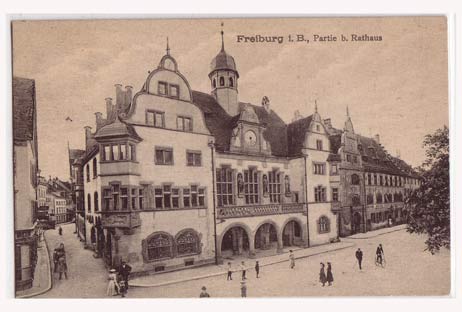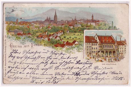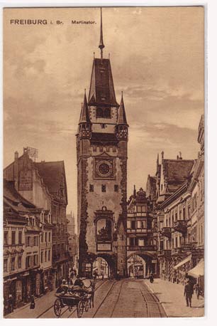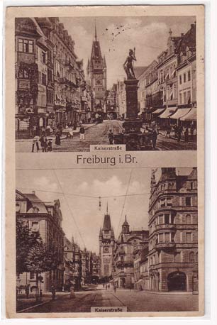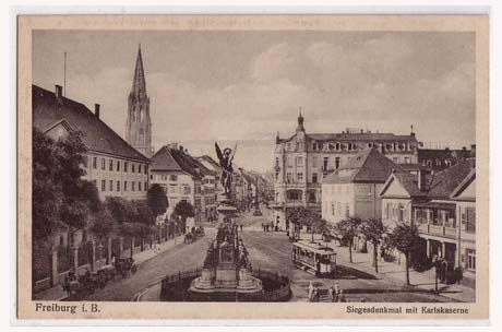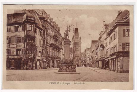 Freiburg Kaiserstrasse mit Strassenbahn 1909