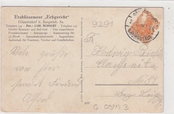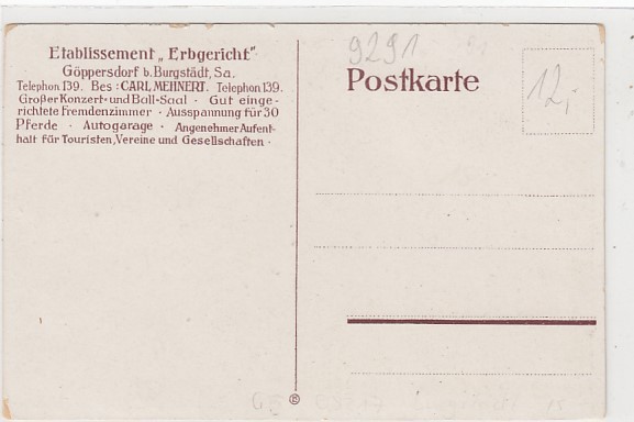 Wechselburg OT Göppersdorf bei Burgstädt Etablissement Erbgericht 1918