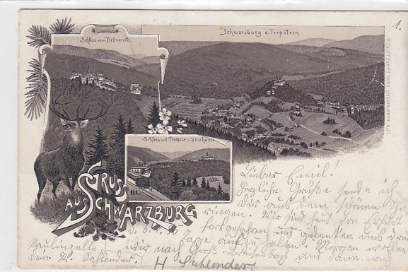 Schwarzburg in Thüringen Litho Ansichtskarte Vorläufer 1895