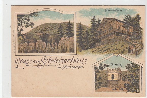 Schwarzburg in Thüringen Schweizerhaus Schwarzathal Schwarzatal Litho ca 1900