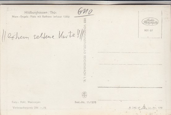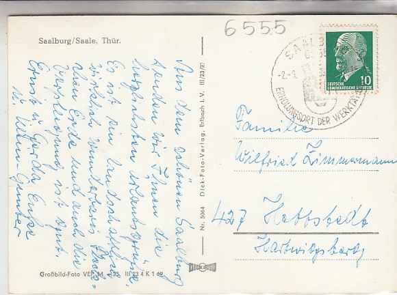 Walsburg bei Eßbach in Thüringen bei Ranis-Ziegenrück Landpoststempel 1961