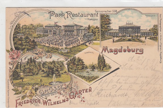 Magdeburg Park Restaurant Friedrich Wilhelm-Garten Litho von 1897