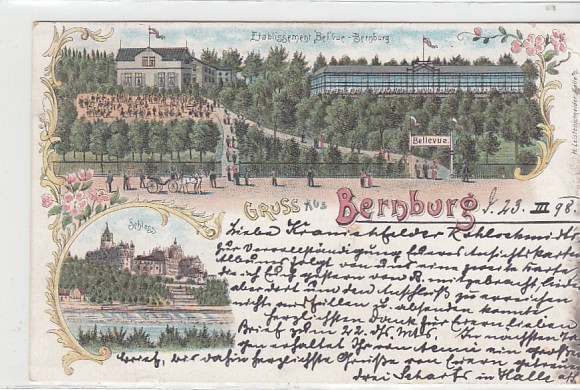 Bernburg an der Saale Etablissement Belvue Litho Ansichtskarte von 1898