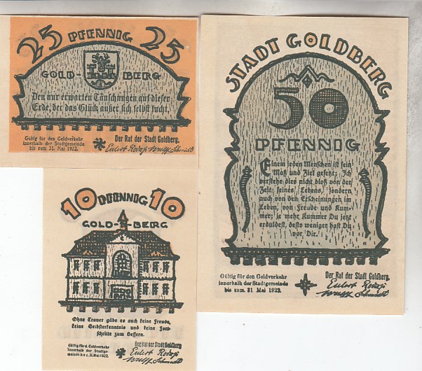 Lübz in Mecklenburg 3 Scheine Notgeld ca 1920