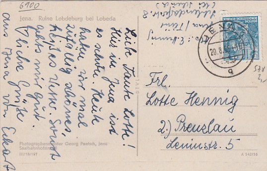 Jena Thüringen Stadtteil Lobeda Ruine Lodeburg 1955