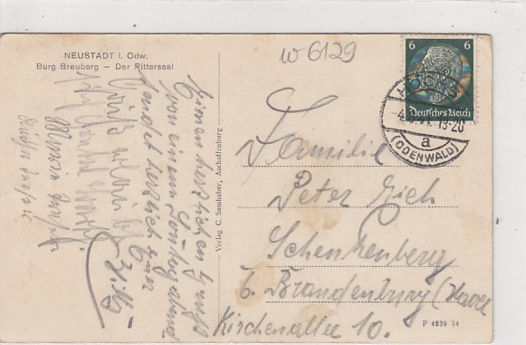 Neustadt im Odenwald Burg Breuberg Rittersaal 1941