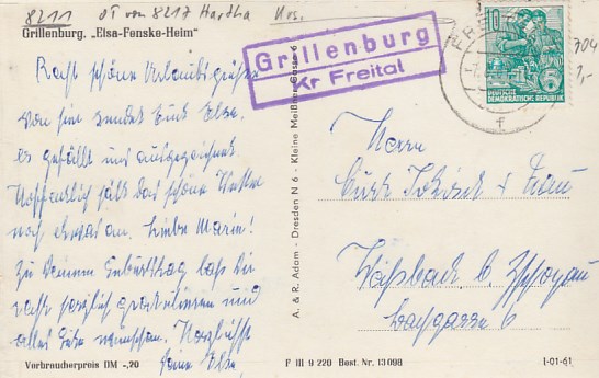 Grillenburg in Sachsen mit Landpoststempel 1958