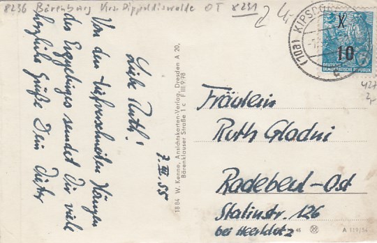 Grillenburg in Sachsen mit Landpoststempel 1955