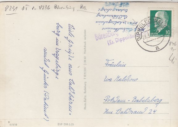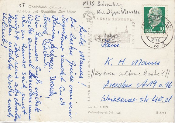 Grillenburg in Sachsen mit Landpoststempel 1962