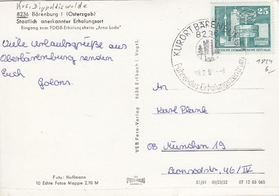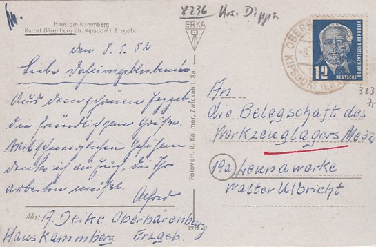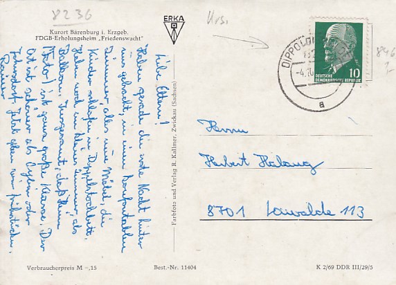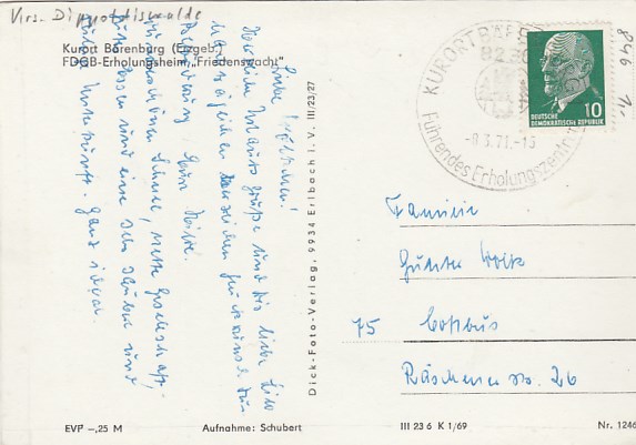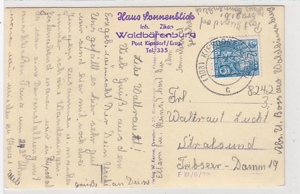Kurort Waldbärenburg im Erzgebirge FDGB-Heim 1961 Landpoststempel