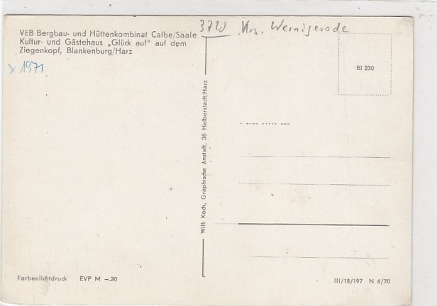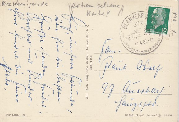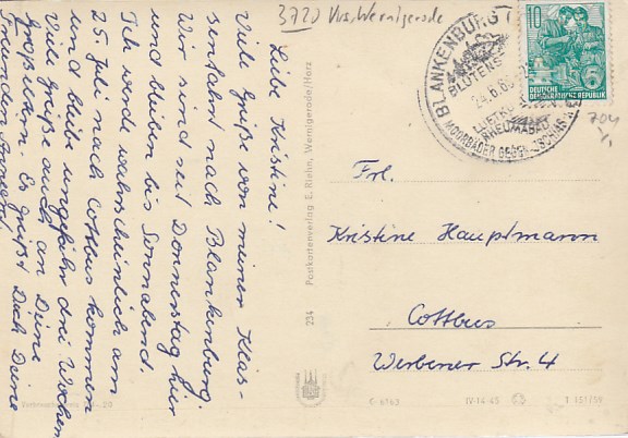 Blankenburg am Harz Jugendherberge Anton Saefkow 1959