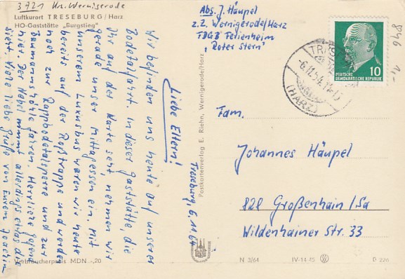 Blankenburg am Harz Hotel Waldfrieden 1963