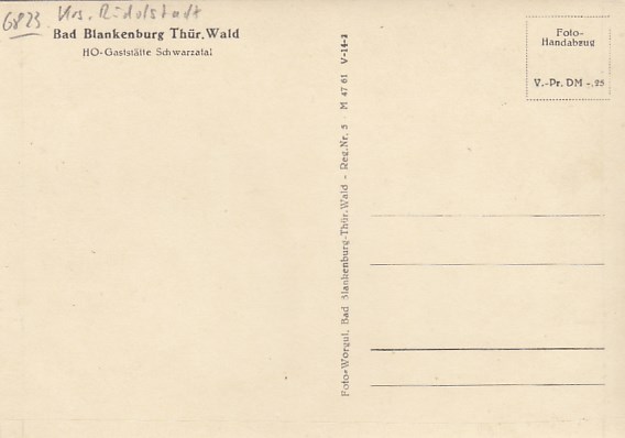 Bad Blankenburg in Thüringen Gaststätte Schwarzatal 1961