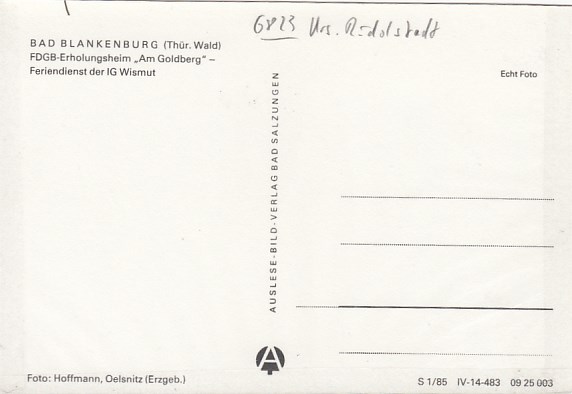 Bad Blankenburg in Thüringen Haus am Goldberg 1985
